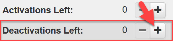 Go to the License Details page in SOLO Server for the License ID, and increment the Deactivations Left count using the + icon: